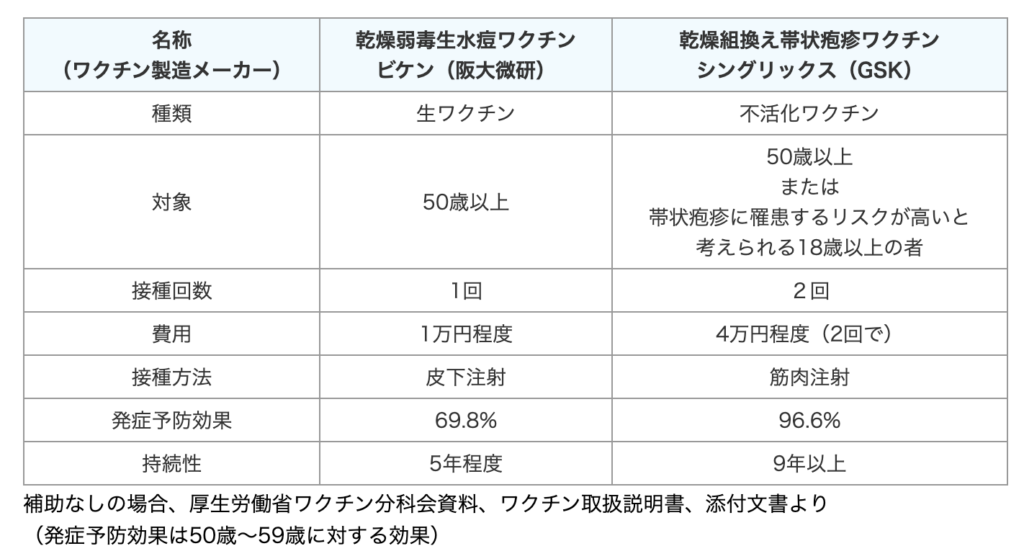 【水痘生ワクチンと帯状疱疹の比較】
